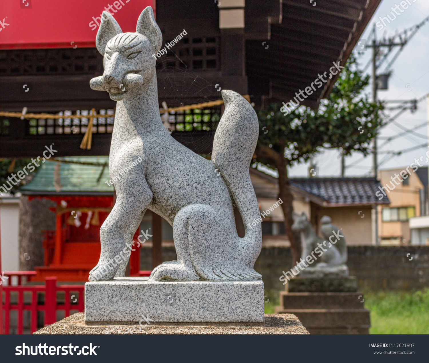 Patung kitsune di Kuil Inari dekat Todaiji, Nara. Kitsune adalah sebutan untuk binatang rubah dalam...