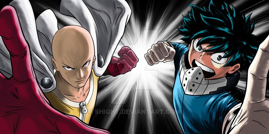 Karakter Saitama di OPM dan karakter Midoriya (Deku) di MHA, keduanya sama-sama memiliki cita-cita ingin menjadi pahlawan. Namun, keduanya mendapatkan kekuatan overpower dengan cara yang berbeda.