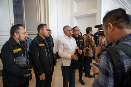 Momen Momen Asosiasi Sesalkan Penembakan Debt Collector oleh Petugas Polisi Ketua Umum Asosiasi Profesional Jasa Penagihan Indonesia (APJAPI), Kevin Agatha Purba (kedua kanan kiri) bersama...