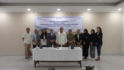Momen Momen Unkris Gelar Uji Publik Calon Ketua dan Anggota Satgas Pencegahan dan Penanganan Kekerasan Seksual Wakil Rektor (Warek) 3 Unkris Dr Parbuntian Sinaga (tengah) berfoto bersama peserta seleksi Satgas Pencegahan...
