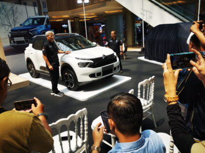Momen Momen Citroen Indonesia Hadirkan The All New Citroen C3 Aircross SUV di Bandung 01/05/2024 โข Chief Executive Officer, Citroฤn Indonesia, Tan Kim Piauw (kiri) membuka selubung saat peluncuran The All-New...