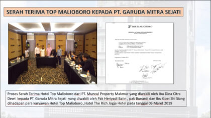 Momen Momen Polemik Investasi Hotel Top Yogyakarta Masih Berlanjut Serah terima Top Malioboro kepada PT Garuda Mitra Sejati. (Foto: PT GMS) NEWS — Saat...