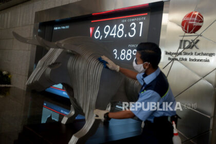 Momen Momen BEI: IHSG Pekan Ini Meningkat 0,14 Persen Petugas kebersihan beraktivitas di dekat layar pergerakan Indeks Harga Saham Gabungan (IHSG), Bursa Efek Indonesia,...