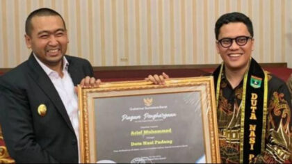Ulas Dulu Ulas Dulu Arief Muhammad, Influencer dengan Jutaan Pengikut, Didaulat Jadi Duta Nasi Padang Wakil Gubernur Sumatra Barat (Wagub Sumbar), Audy Joinaldy, menobatkan influencer Arief Muhammad (kanan) sebagai Duta...