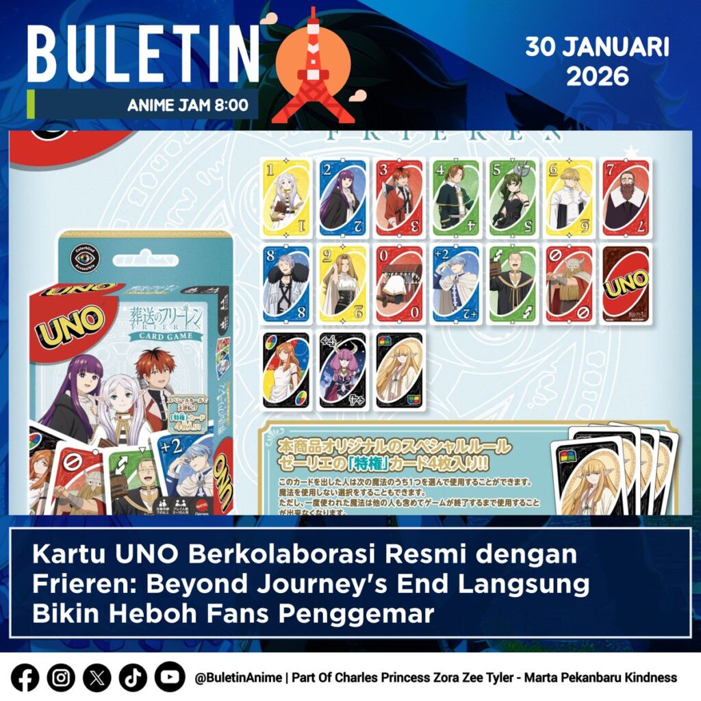 Dilansir dari Seputarotaku pada 30 Januari 2026, kolaborasi ini bukan sekadar gimmick biasa. Melalui akun resmi X manga @frieren_PR, sebuah poster promosi dirilis menampilkan karakter-karakter ikonik dari cerita seperti Frieren, Fern, Stark, Himmel, Aura, dan lain-lain yang diadaptasi menjadi kartu UNO bertema sihir.