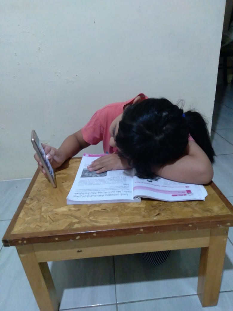 Secara psikologis saya melihat tekanan lebih terasa pada anak bungsu saya ketimbang yang sulung. Bagi si bungsu, pembelajaran jarak jauh benar-benar seperti meneror mentalnya. Di tengah kejenuhan yang luar biasa dia tetap harus dibebani materi-materi pelajaran yang dikirimkan gurunya setiap hari. Belum lagi tekanan yang secara tak sadar juga saya berikan agar dia tetap bisa mempertahankan nilai-nilai pelajarannya.
