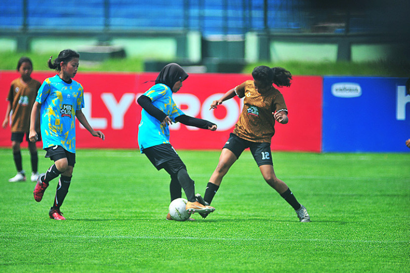BANDUNG โ Ribuan siswi sekolah dasar di Kota Bandung ikuti gelaran MilkLife Soccer Challenge – Bandung Series 2 2024 di Stadion Siliwangi Bandung, Sabtu (12/10). 1.564 siswi dari 68 Madrasah Ibtidaiyah dan Sekolah Dasar dari Kota Bandung dan sekitarnya mengikuti turnamen sepak bola putri yang digelar Rabu (9/10/2024) hingga Ahad (13/10/2024) .