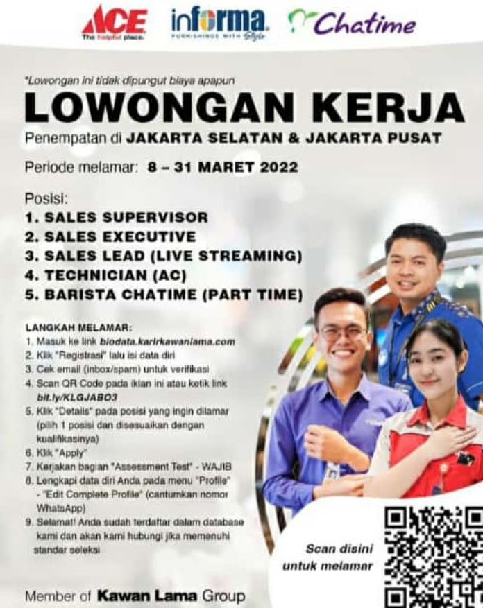 Kawan Lama Group yang menaungi Informa, Ace Hardware, dan Chatime membuka lowongan kerja terbaru.