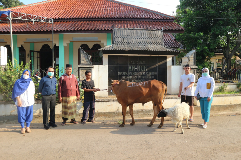 Pemberian hewan kurban turut diwakili oleh Direktur Siloam Hospitals Purwakarta, dr Irwan Gandana, MARS; Head of Business Siloam Hospitals Bekasi, drg. Tina Esadiarti; dr. Inneke mewakili manajemen Siloam Hospitals Lippo Cikarang, dan tim Rohis MRCCC Siloam Semanggi.