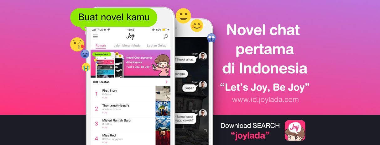 Joylada adalah aplikasi novel chat pertama di Indonesia. Uniknya, Joylada menyediakan cerita dalam bentuk chat. Untuk mendapat penghasilan, penulis tinggal mengunduh aplikasinya di Play Store atau App Store. Setelah itu, penulis bisa login dengan Facebook ataupun membuat akun baru. Lalu, mengikuti petunjuk dalam pembuatan akun, dan setelah mengisi semua data, maka kamu bisa langsung memuat cerita.